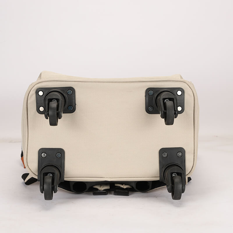 Nthawi zambiri mumatha kunyamula chikwama cha mawilo, koma zimatengera ndege.Kachilo kakang'ono kalikonse kamene kamakhala kakang'ono kokwanira kuti kakhale kamunthu kake kayenera kukhala mkati mwa miyeso yololedwa kunyamula katunduyo ndipo ikuyenera kulowa mu bin ya ndegeyo kapena ifufuzidwe pachipata.