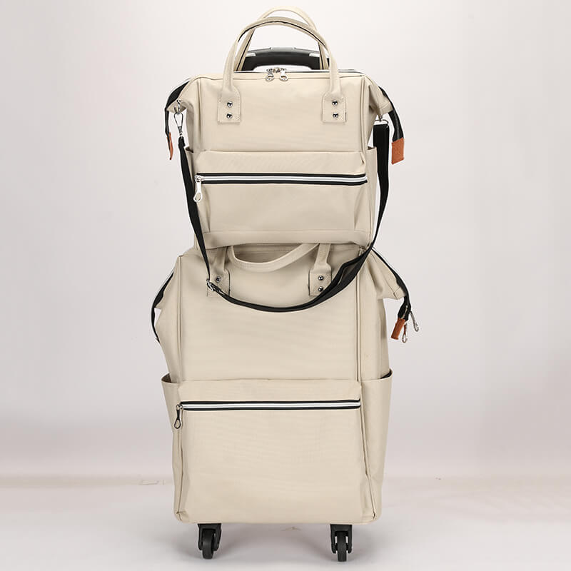 Zikwama zogudubuza ndi zabwino kwa ophunzira omwe ali ndi mabuku ambiri (ndi zina) kuti atsike m'njira zazitali.… Sikuti ili ndi mawilo kokha komanso ili ndi zomangira pamapewa zobisika mchipinda cha zipi kotero kuti maphunzirowo akakhala opepuka, mutha kuvala ngati chikwama chokhazikika.