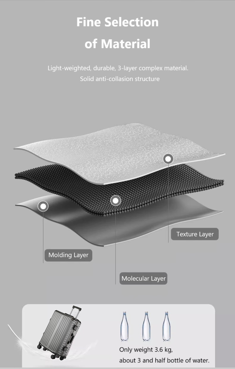 This hard-shell laptop luggage is designed for effortless travel. It features silent spinner wheels for smooth navigation and is available in 20 and 24-inch sizes, providing a durable solution for both carry-on and extended trips.