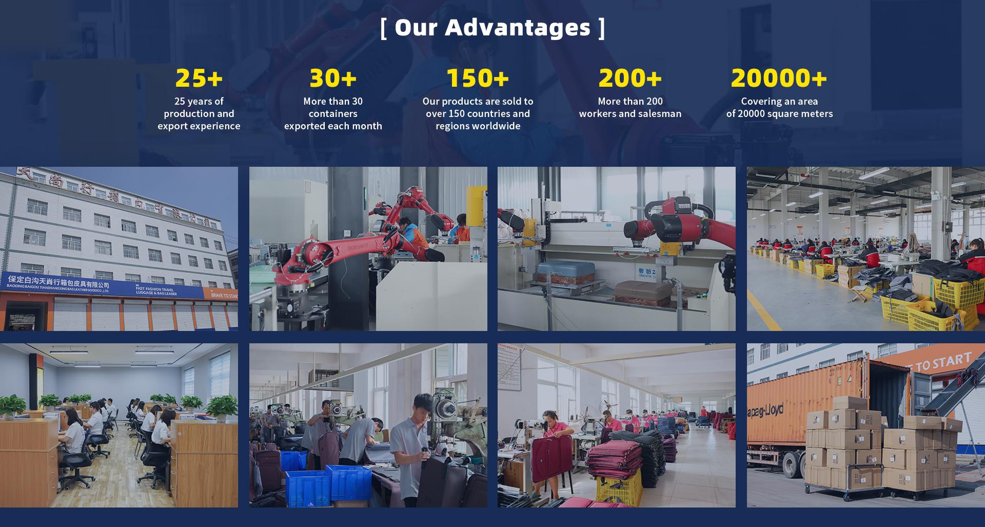 Founded in 1999, OMASKA Luggage Manufacturing Co., Ltd. is located in Baigou, Baoding, China. The company is a professional manufacturer of luggage, with advanced production equipment and technical team, and its products sell well in domestic and foreign markets.