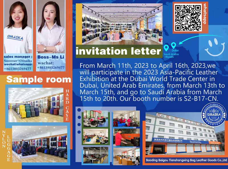 Go to the 2023 Asia-Pacific Leather Exhibition with TianShangXing luggage and backpack factory.