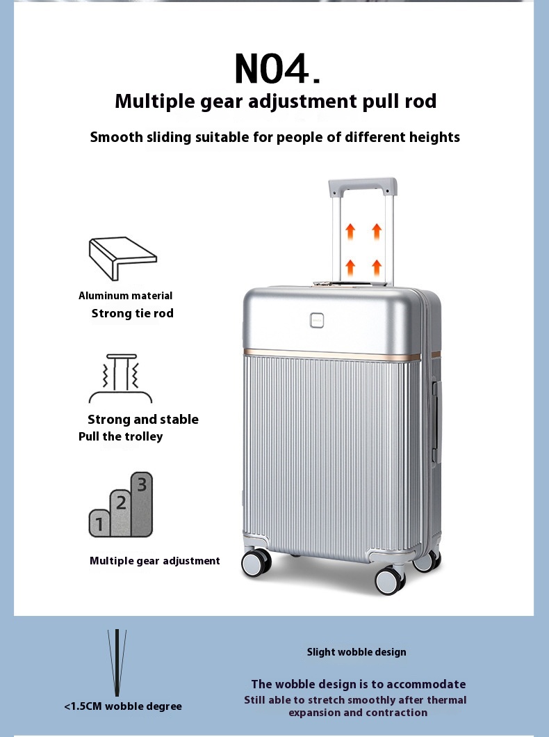 This OMASKA fashionable PC hard shell suitcase is lightweight, waterproof, and durable. It features an anti-theft password lock and silent spinner wheels, and is available in multiple sizes—20, 24, 26, and 28 inches—making it the ideal companion for easy and safe travel.