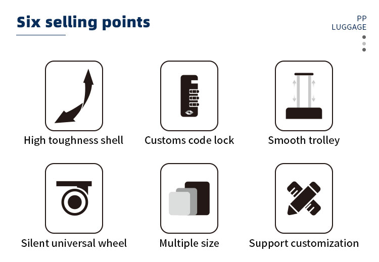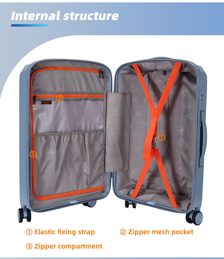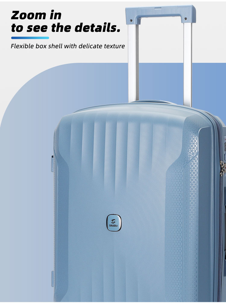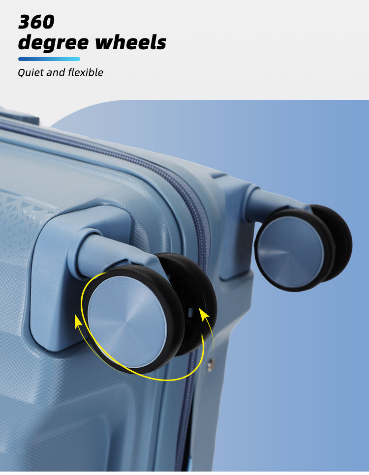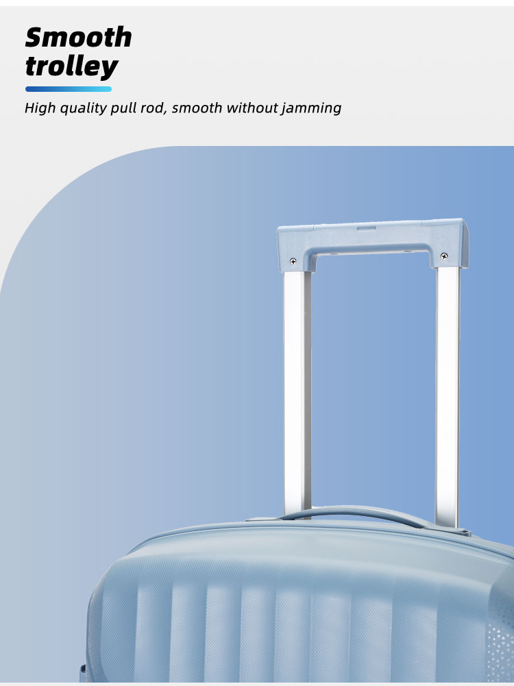 Discover the ultimate travel companion – our PP luggage. Lightweight yet durable, its high – quality PP material withstands the rigors of long – distance travel. Smooth – rolling wheels and a sturdy telescopic handle ensure easy maneuverability. With a spacious interior for all your essentials, it’s the perfect partner for your next adventure, whether it’s a business trip or a family vacation.