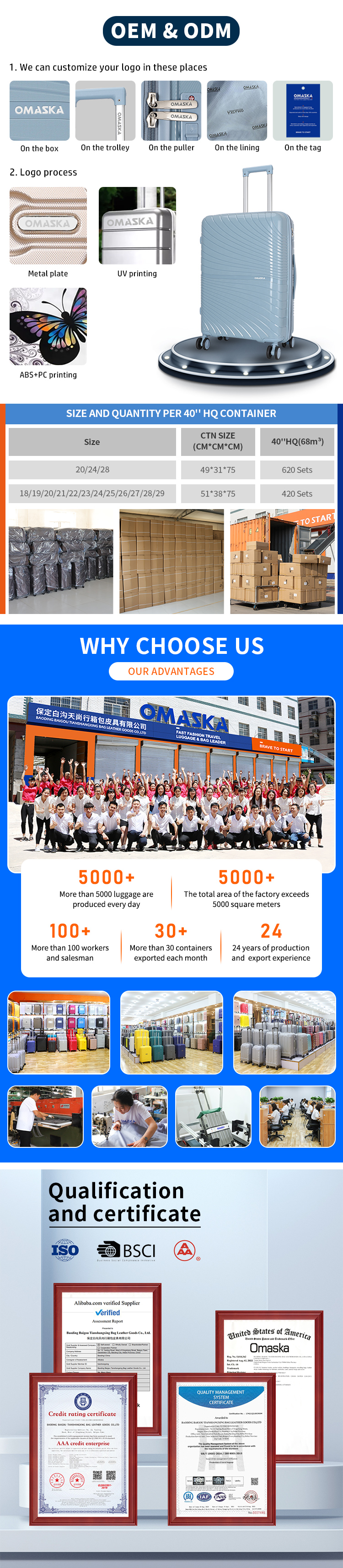 OMASKA Waterproof Suitcase Rolling Luggage Best Selling Luggage