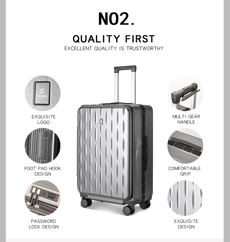 Discover the OMASKA PC Luggage, the ultimate travel companion for the modern explorer. Constructed from durable polycarbonate, this suitcase offers exceptional impact resistance, ensuring your belongings are safeguarded throughout your journey. Its innovative design features a telescopic handle with multiple adjustable heights and 360° spinner wheels for effortless navigation in any environment. The spacious interior, equipped with elastic straps and zipped compartments, provides organized packing space. Available in various sleek colors, the OMASKA PC Luggage combines style and functionality, making every trip a breeze.