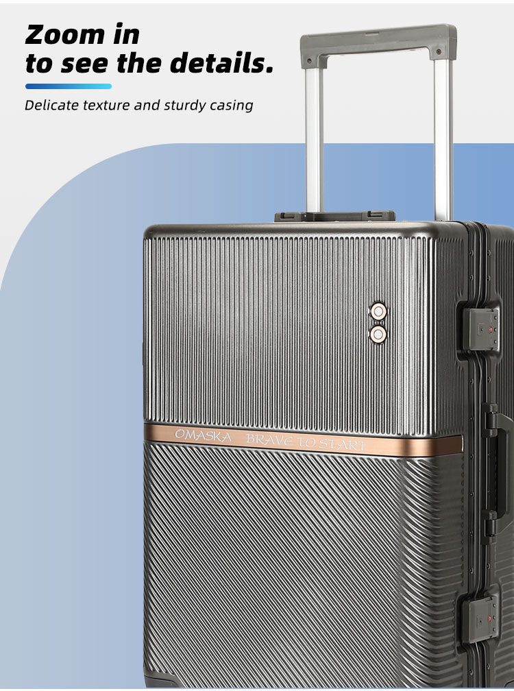 This OMASKA wholesale luggage set for men is a high-quality choice made from durable PC and aluminum. It features smooth spinner wheels, and with sizes available in a set of 20, 24, and 28 inches, it’s built to provide a reliable and effortless travel experience.