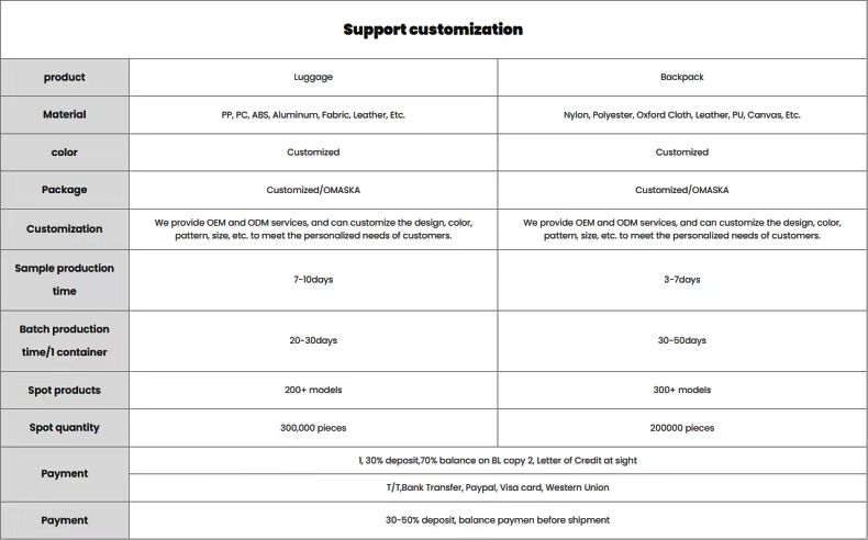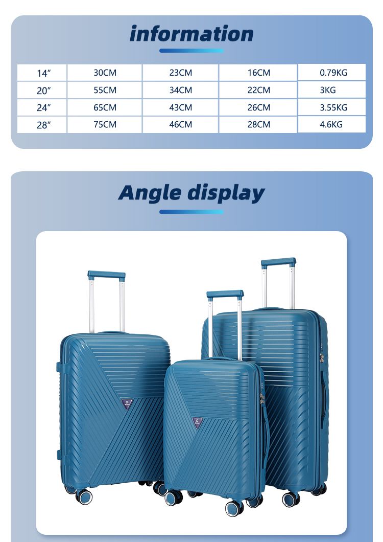 PP Luggage set 14 20 24 28 Inch Travel Bags OMASKA wholesale suitcase