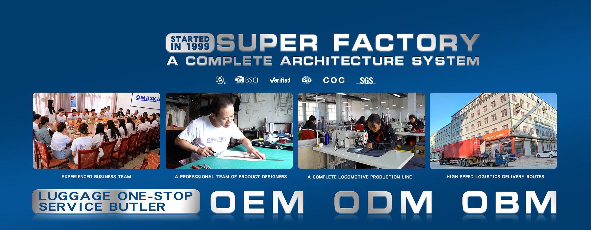 Ngaba ungumsasazi wemithwalo ekhangela ukwandisa iphothifoliyo yakho kunye nomgangatho ophezulu, ophucukileyo, kunye neemveliso zentengiso? Umzi mveliso we-Omaska Luggage liqabane lakho elifanelekileyo. Ngaphezulu kweminyaka engama-25 yobungcali ekuyileni nasekufumaneni umthwalo we-PARMUMImu, sibe ligama elithembekileyo kwishishini lokuhamba lehlabathi. Sijoyine ukuvula amathuba angafaniyo ngokwazisa kunye nenzuzo.